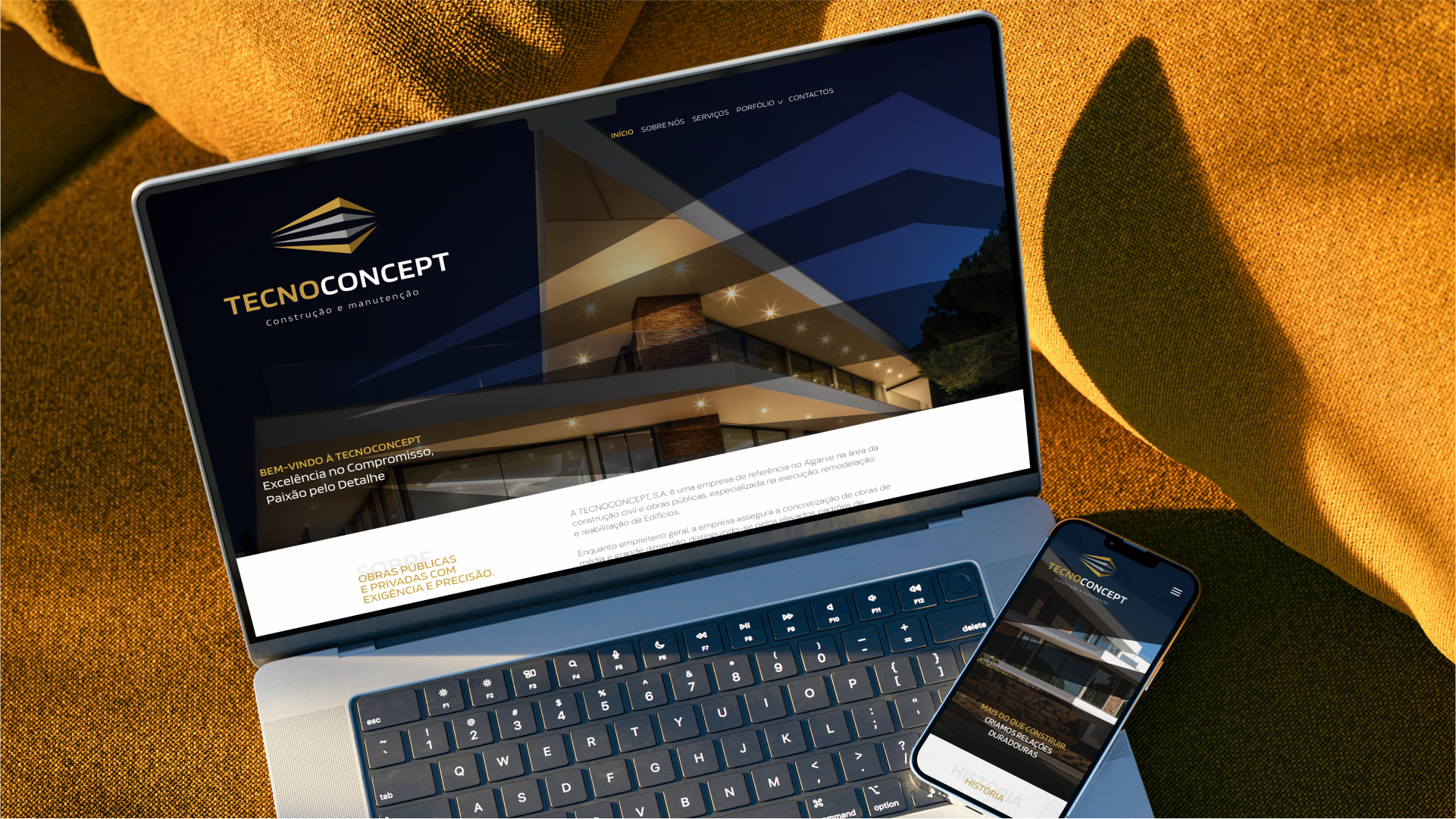 Ao longo do projeto, conduzimos um processo completo de re-branding estratégico, com a criação de nova linguagem visual, desenvolvimento do website institucional (tecnoconcept.pt), capas e estacionário personalizados, decoração de viaturas, uniformização da identidade em todos os pontos de contacto.
